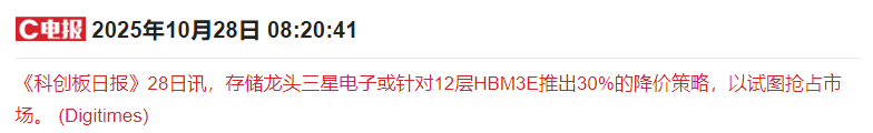 据报道,存储龙头三星电子或针对12层HBM3E推出30%的降价策略,以试图抢占市场。